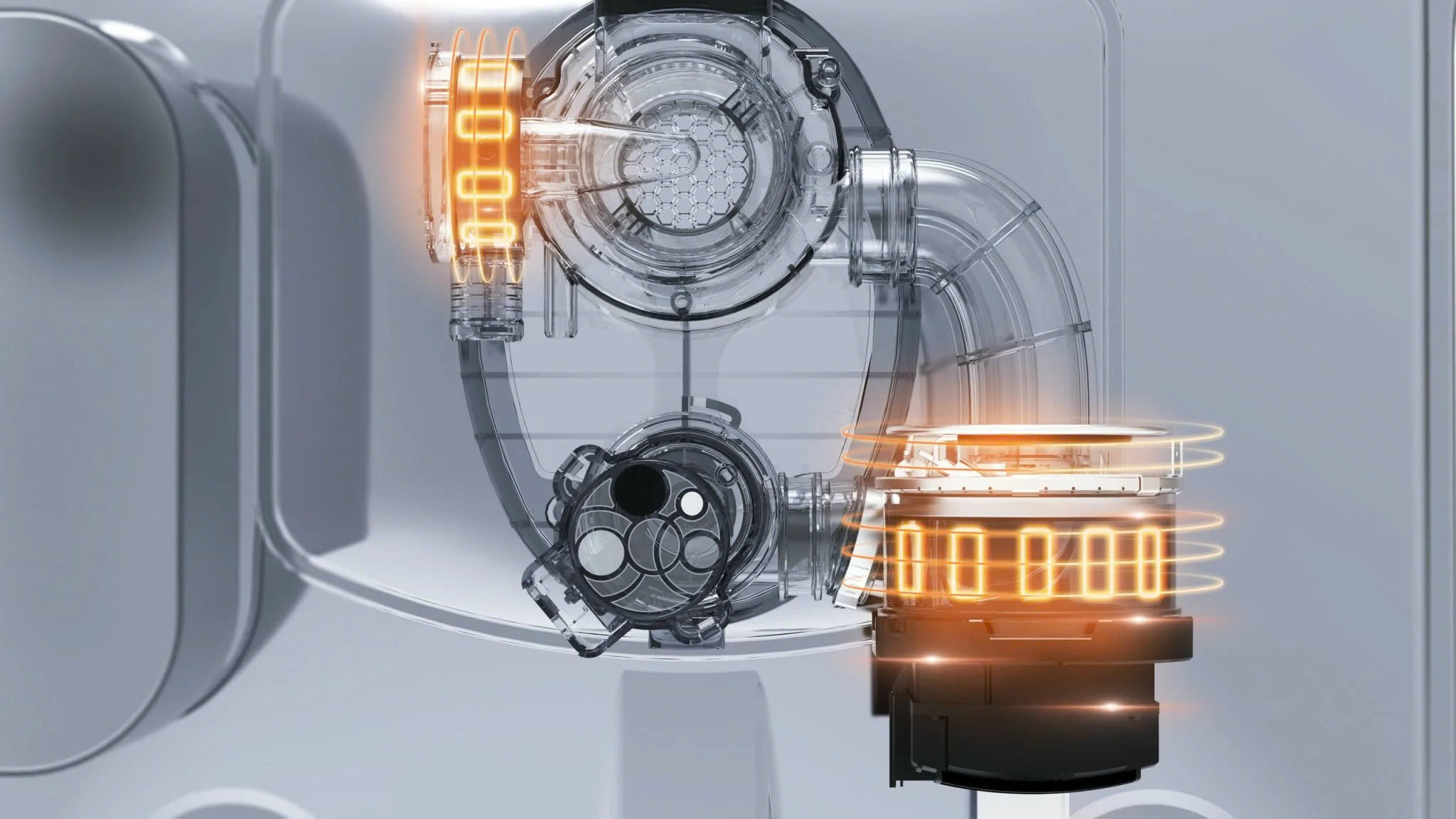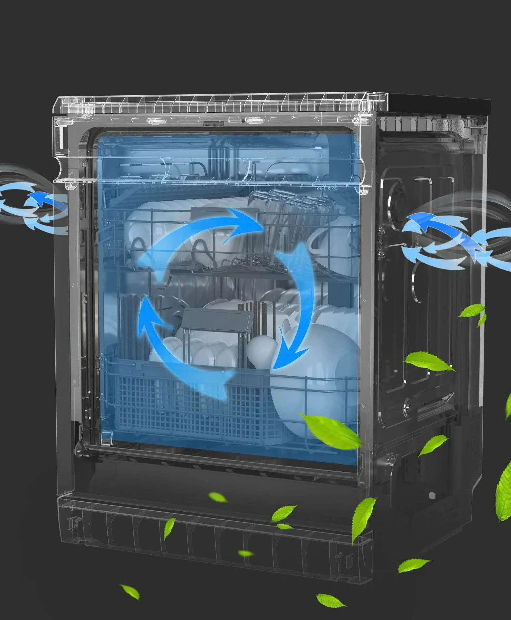Dual Vortex Wash – Công nghệ rửa kép xoáy áp lực cao: Hai vòi phun đa chiều tạo ra luồng nước mạnh mẽ len lỏi vào từng ngóc ngách, đánh bật mọi vết bẩn cứng đầu, kể cả trên đồ dùng có hình dạng phức tạp. Nhờ đó, bát đĩa luôn sạch bóng và không cần tráng lại bằng tay.