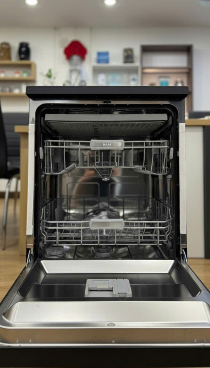 Với thiết kế tinh tế và công năng vượt trội, máy rửa bát KAFF KF-S17805B LUX không chỉ là thiết bị gia dụng mà còn là điểm nhấn hiện đại trong căn bếp của bạn. Có thể để độc lập bên ngoài hoặc để âm tủ như hình bên dưới: